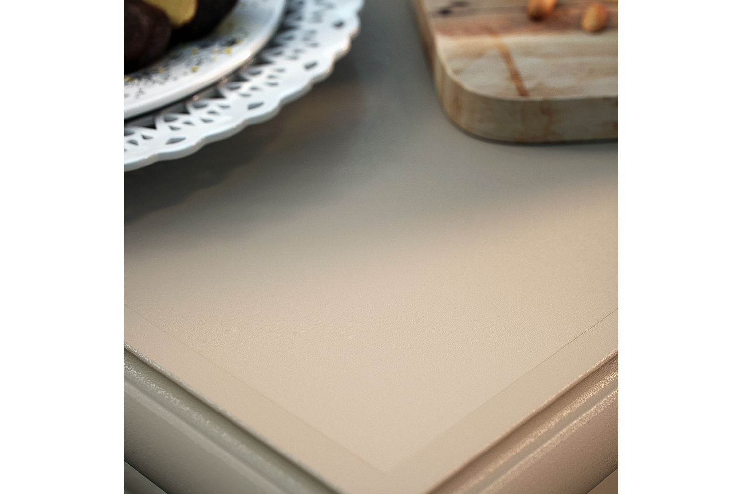 - Фасады: МДФ профиль, в глухом фасаде — вставка из ЛДСтП 0,6 см, в фасаде со стеклом — вставка из стекла с рисунком;