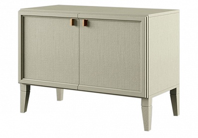 - В нижней части за распашной стеклянной дверцей одно отделение со шпонированной внутренней полкой, в верхней части за распашной стеклянной дверцей отделение с тремя стеклянными полками;