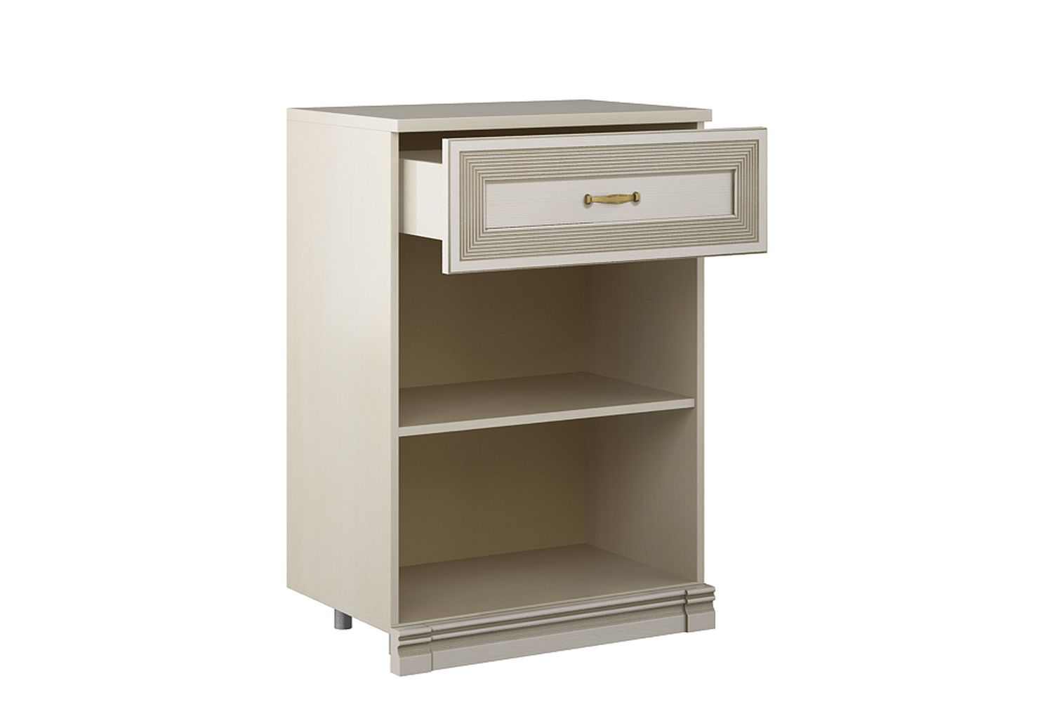 - Тумба с выдвижным ящиком и полкой ЛДСП за распашными фасадами;