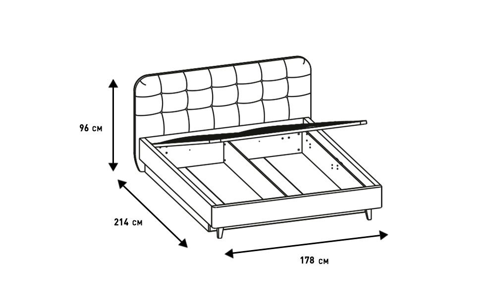 - Спальное место — ортопедическая решетка, состоящая из металлического каркаса и гнутоклееных лат, которая изготовлена в соответствии с требованиями ГОСТ;