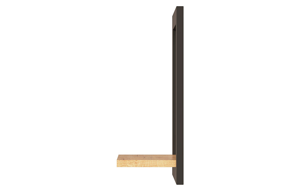 Оригинальная конструкция станет достойным акцентом лофтового или норвежского интерьера. Рамочная часть изделия, окрашенная в темный графитовый оттенок, расположена перпендикулярно к полке, стилизованной под текстуру древесины, что создает необычный 3D-эффект. В коллекции «Онега» представлены модели разных размеров и в нескольких цветовых решениях — это позволяет хозяевам дома собирать нестандартные композиции и подходящие под их нужды системы хранения.