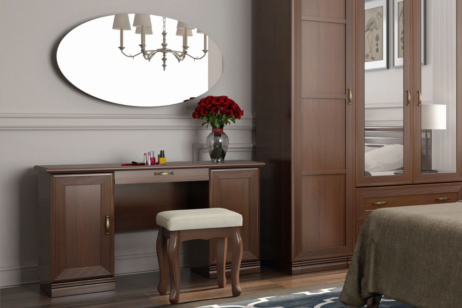 Чтобы сделать интерьер более завершенным, вы можете дополнительно приобрести аксессуары из металла и графичные постеры в базовых оттенках. Для большего удобства композицию можно завершить мягким пуфом или банкеткой в кремовых оттенках или в тон мебели. Конечно же, не забудьте про туалетный столик, который сделает утренние и вечерние ритуалы еще приятнее.