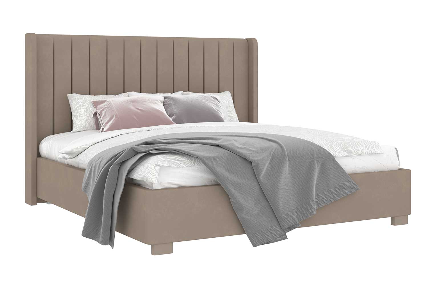 - Кровать выполнена в ткани велюр, коричневый (Omega 14);