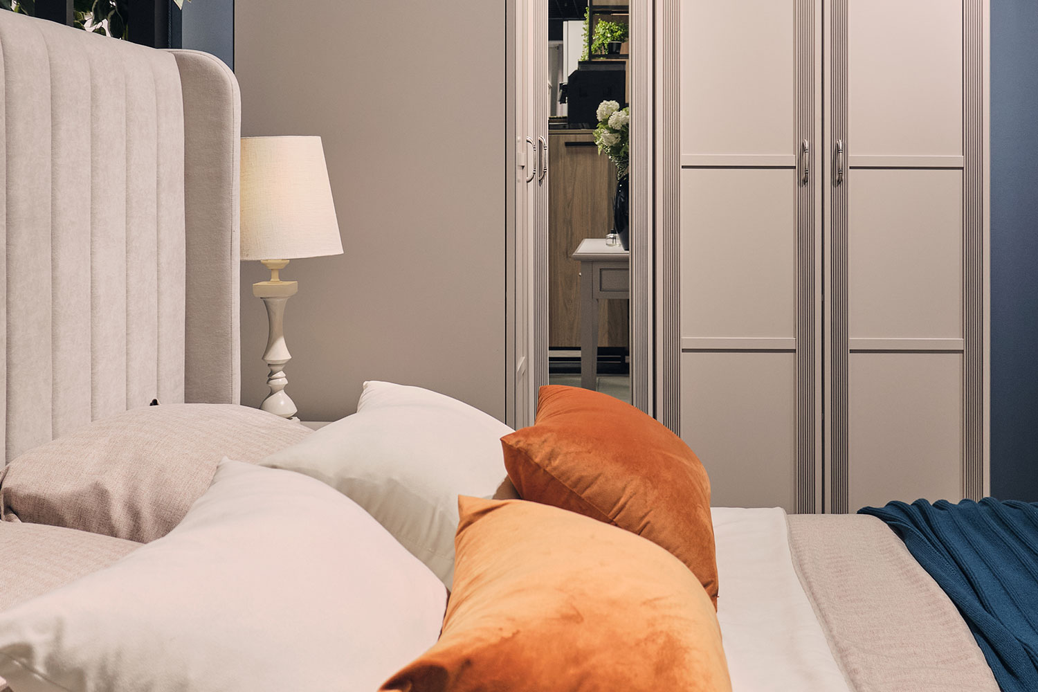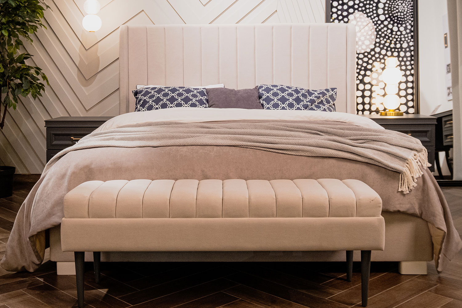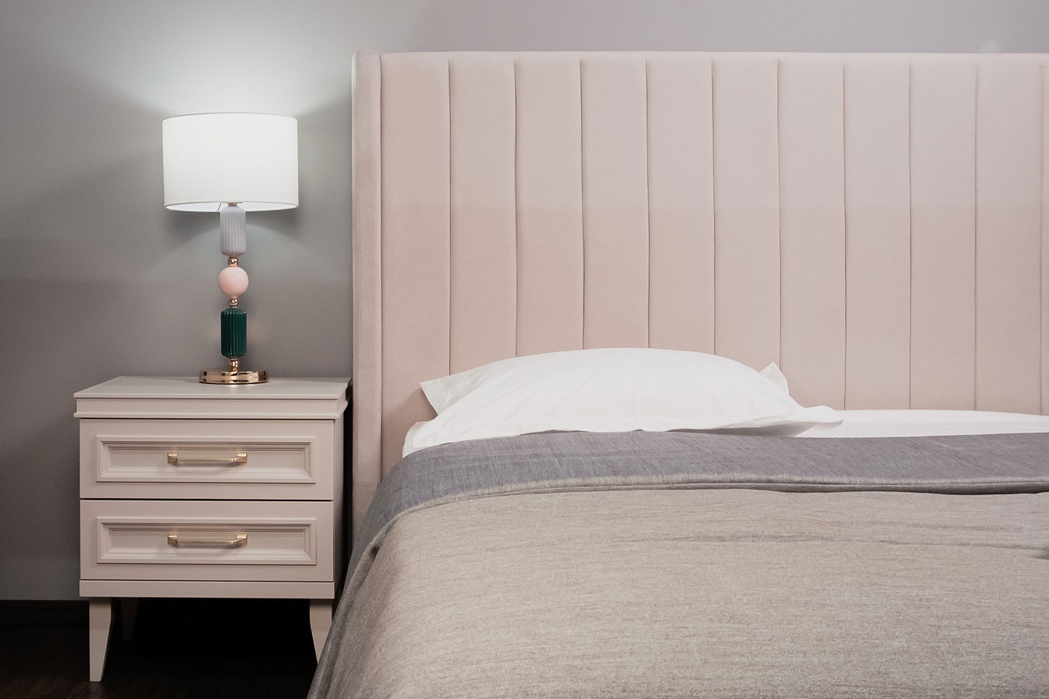 - Изголовье декорировано вертикальными линейными утяжками. Имеет эргономичную форму и размер;