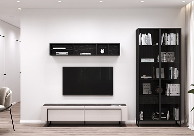 - Цвет задней стенки шкафов: черный графит;