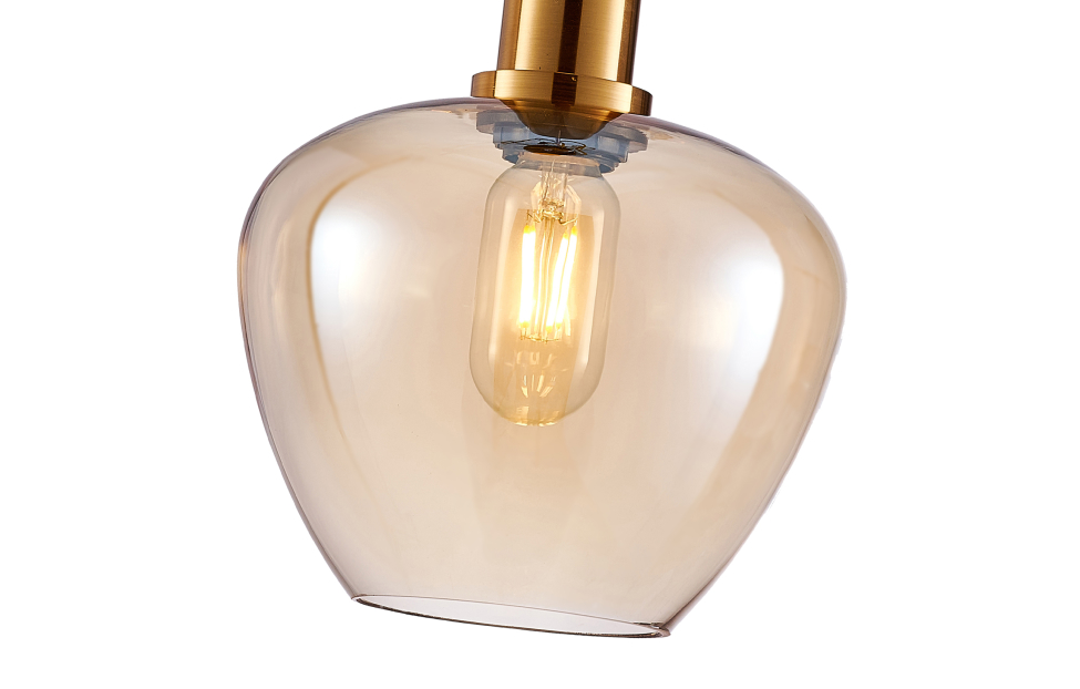 Подвесные светильники Dubbel станут идеальным решением для тех, кто ценит элегантность, функциональность и современный дизайн. Особенностью коллекции стало разнообразие форм стеклянных выдувных плафонов, которые представлены в пяти вариациях, в сочетании с металлическими элементами. Металлический каркас в цвете латунь, выдувной плафон янтарного цвета, цоколь Е27,сменная лампа, регулируемая высота.
