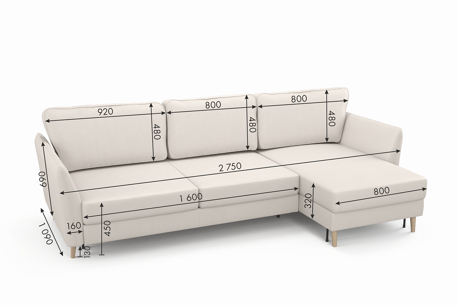 Купить Диван АННИКА NEW 3-х местный с оттоманкой и темными опорами в интернет-магазине мебели «Ангстрем»
