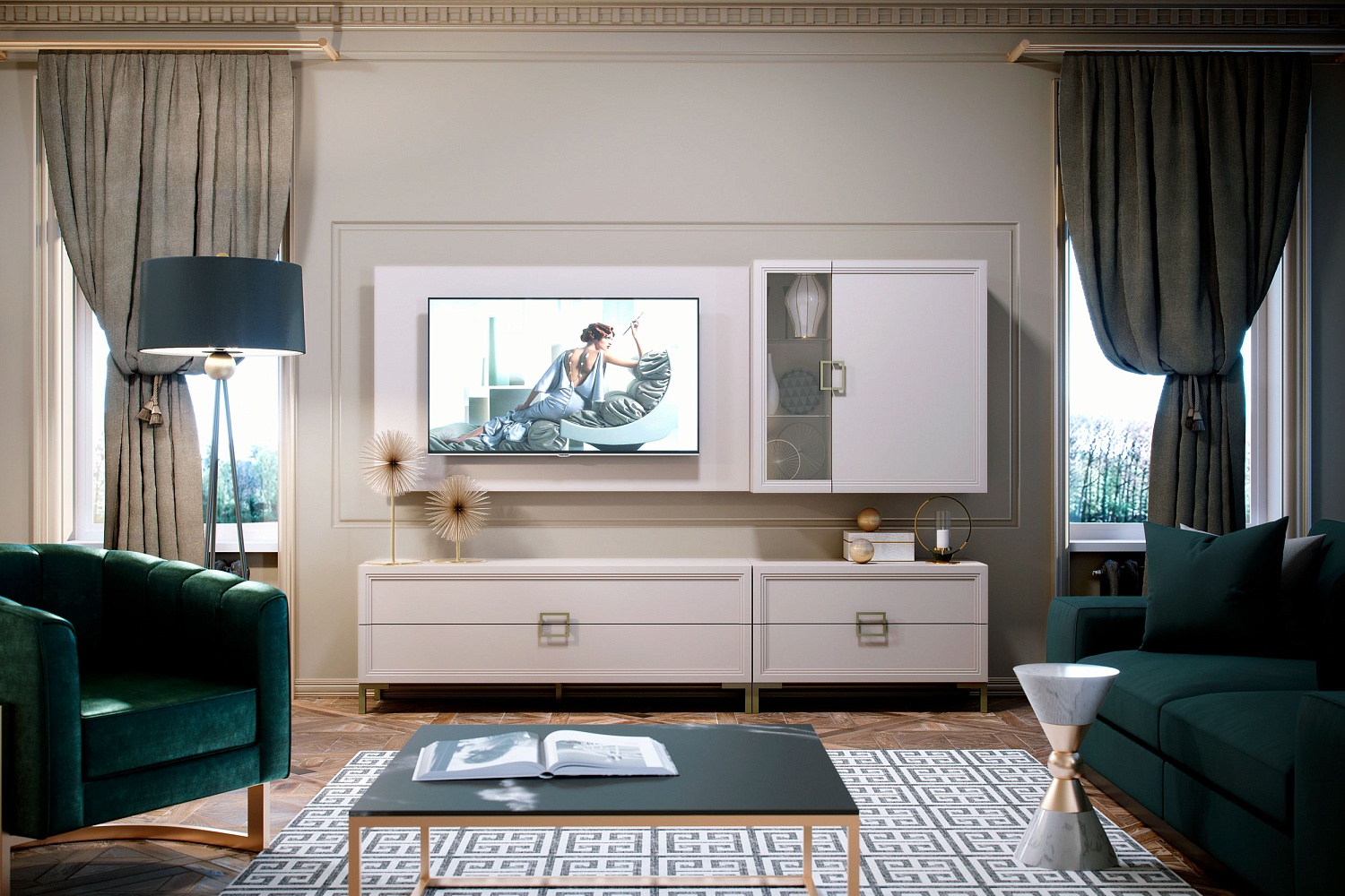 – описание: стиль минимализм, неоклассика, ар-деко, цвет кашемир серый, трюфель коричневый, назначение для гостиной.