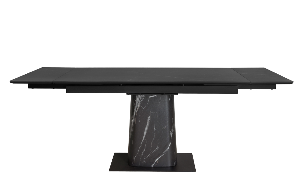 Обеденный стол с двумя торцевыми механизмами подъёма. Столешница МДФ16 в пленке ПВХ + керамика. Опора: основание металл, верх фанера (9L+HPL на выбор).