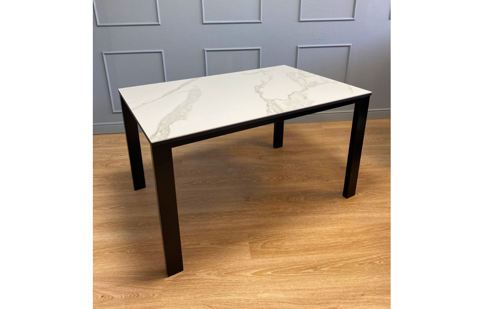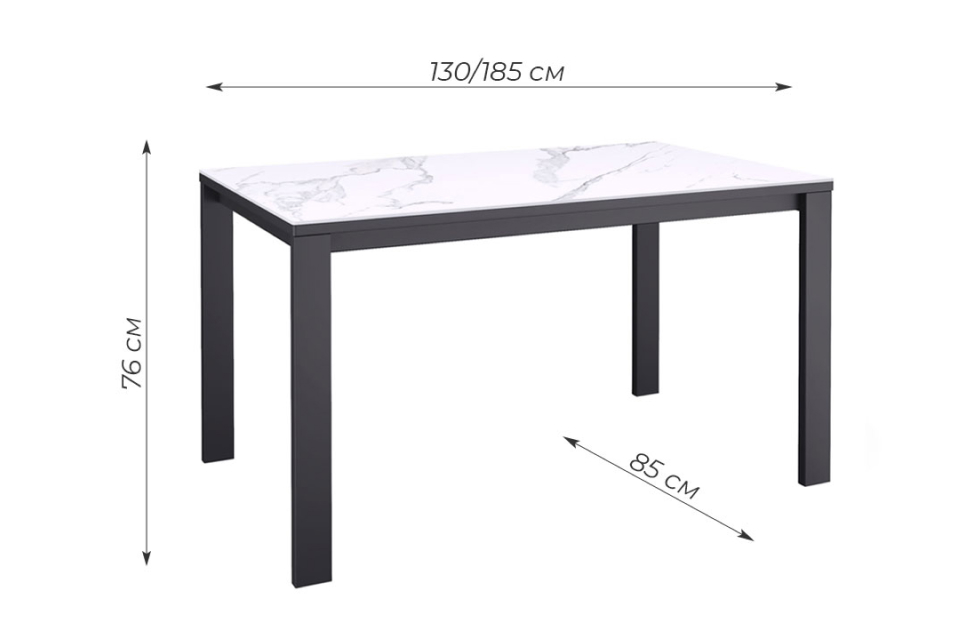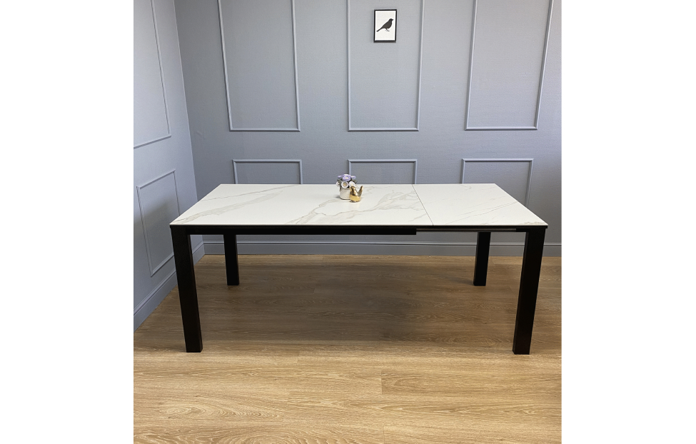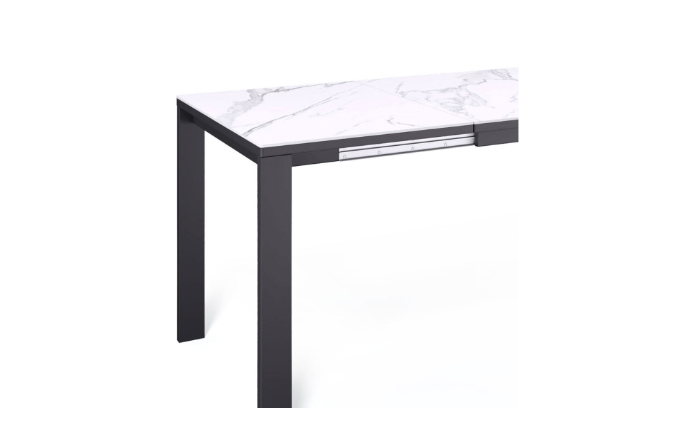 Купить Стол обеденный Легро раздвижной черный/керамика мрамор белый в интернет-магазине мебели «Ангстрем»