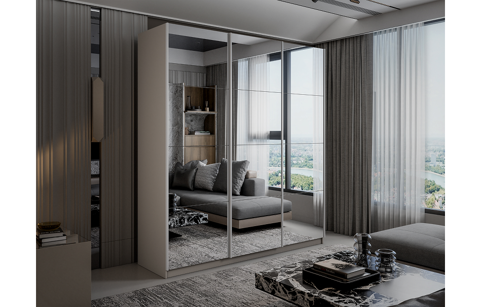 Цена на Шкаф-купе Lux 210х230х57 зеркальные фасады / Кашемир от производителя , приобретите в кредит!