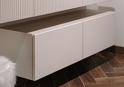 - Внимание! Открывание ящиков происходит путем захвата фасада снизу, поэтому нельзя навешивать вплотную снизу другие модули коллекции Дольче (открывание фасадов будет затруднительным);