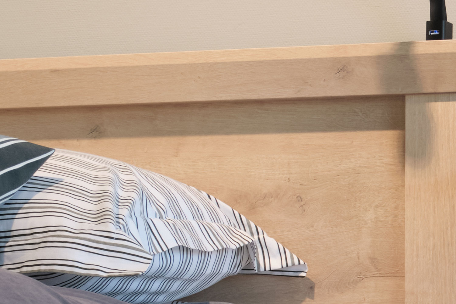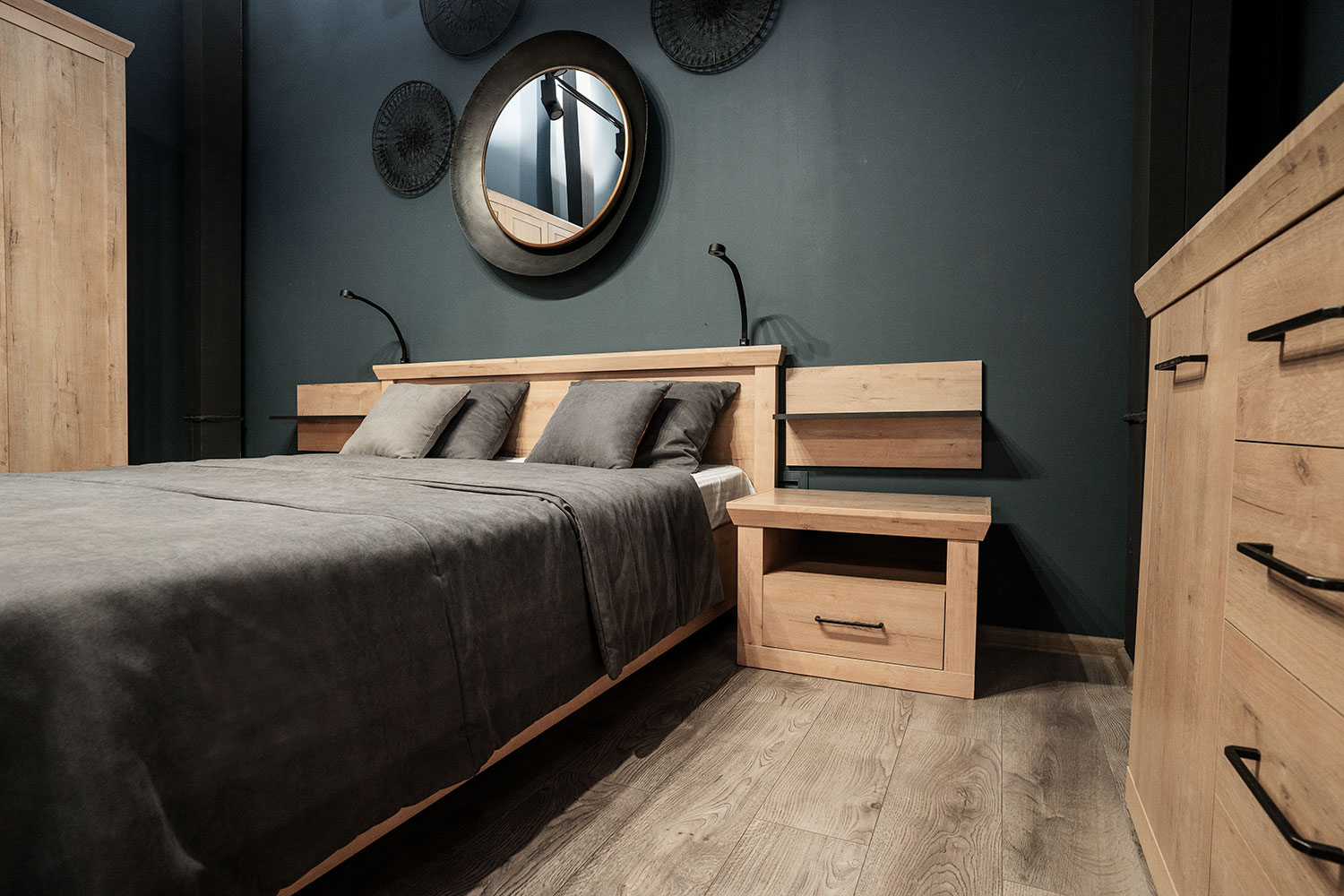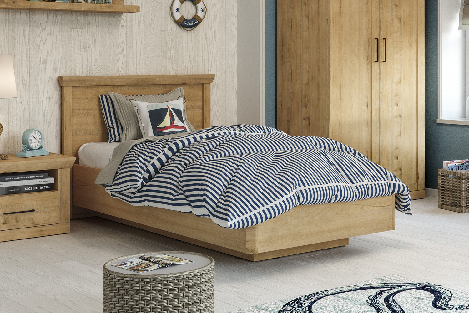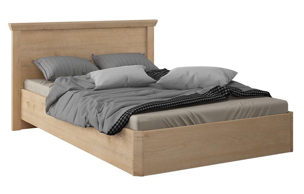 Стильная полутораспальная модель, выполненная в нейтральном светлом оттенке «дуб бунратти», воплощает лучшие традиции современного минимализма. Теплая древесная фактура разбавит темную палитру лофта и хорошо впишется в скандинавский интерьер. Высокое изголовье венчает декоративный карниз со скошенными краями, а закругленные края корпуса из ЛДСП гарантируют безопасную эксплуатацию в ночное время.